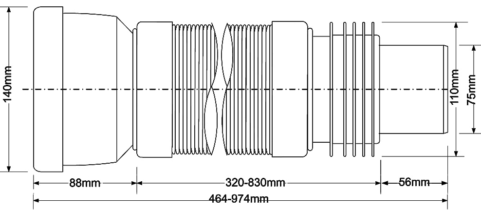 MRFLX-V81 ԶԿ-ի միացման գոֆրա (L464-974մմ) մուտք 110 ելք 75/90/110 սպիտակ McALPINE