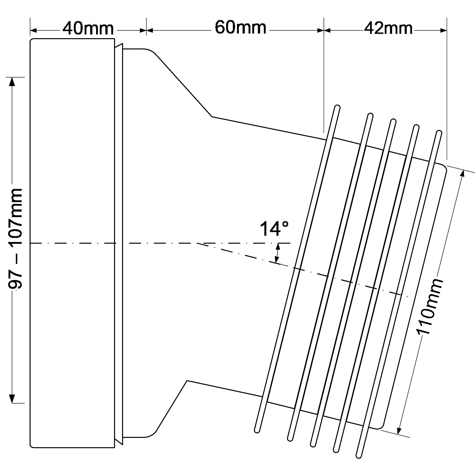 MRWC10 ԶԿ-ի միացման խողովակ (L140մմ) շեղում 14° Du97-107մմ DN110մմ սպիտակ McALPINE