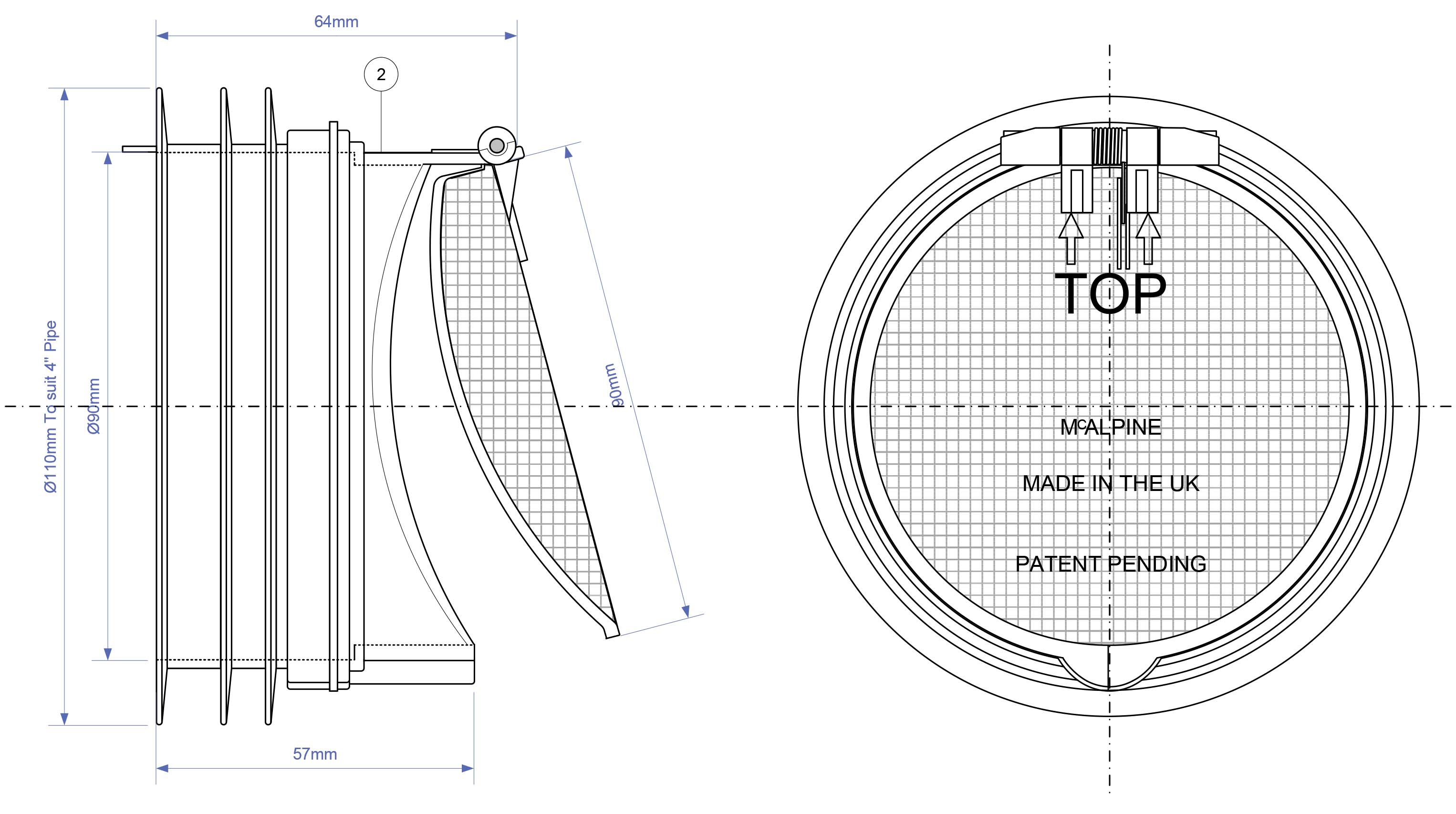 MRWC-ARB1SМанжета для фановой трубы виде обратного клапана (подпружиненная створка усиленная металлической сеткой) вход Ду90мм, вых. вставляется внутрь 4"/110мм трубы McALPINE